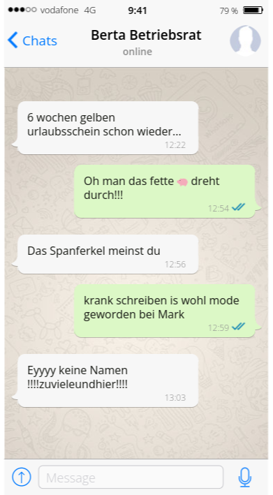 Dies verdeutlicht eine Entscheidung des Landesarbeitsgerichts Baden-Württemberg (Urteil vom 22.06.2016 – 4 Sa 5/16), das im Falle einer Beleidigung bei WhatsApp eine Abmahnung für ausreichend gehalten hat. Es handelte sich um einen Gruppenchat, in dem über einen Vorgesetzten vom Leder gezogen wurde:
